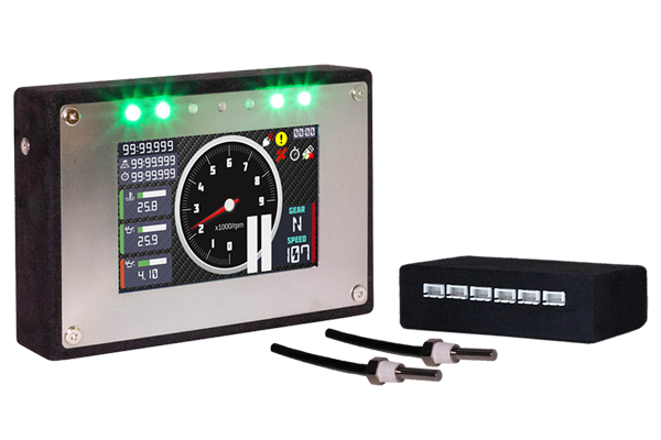 車両情報管理コントローラに入力された各種情報(車速、エンジン回転数、ギア位置、水温・油温、油圧、時刻)を、液晶メータに表示します。